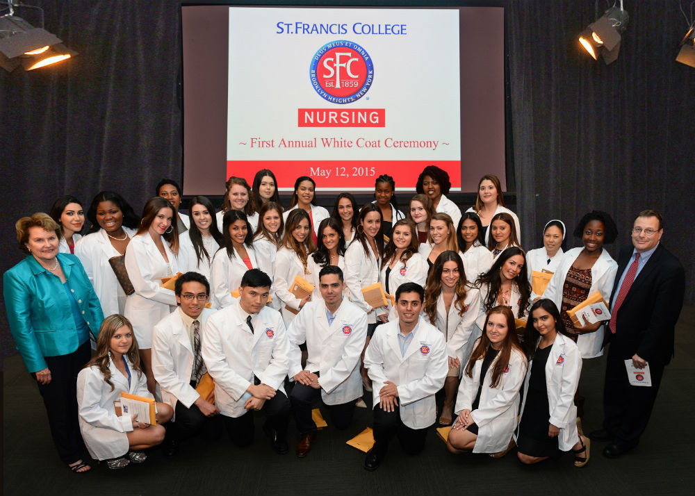 More than 40 undergraduate Nursing students received a medical White Coat emblazoned with the St. Francis College logo to show their dedication to the health and well-being of their future patients at St. Francis College's first White Coat Ceremony on Tuesday, May 12, 2015.