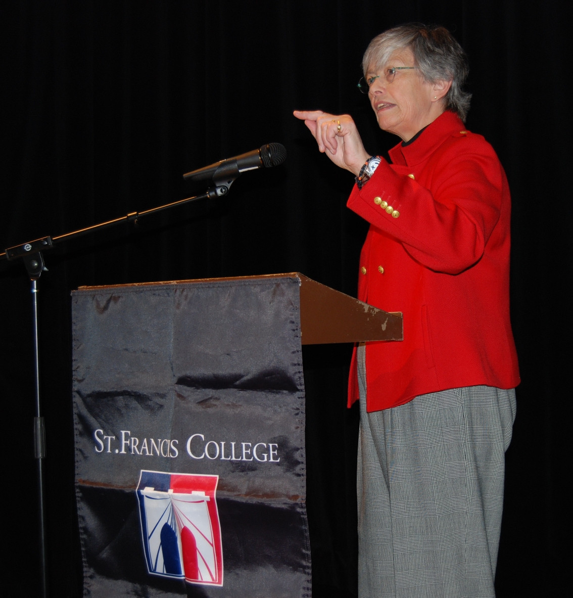 A crowd of students, faculty and members of the community filled the Maroney Forum at St. Francis College Thursday, March 27 for a talk by former City Council President and New York State Senator Carol Bellamy on how women and children are the main force behind positive societal developments across the world.
