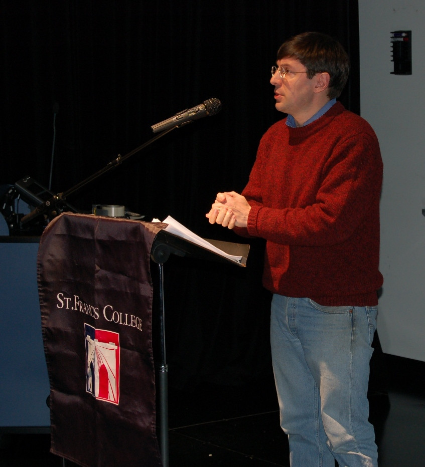 More than a hundred students, staff and community members filled the Maroney Forum for Arts, Culture and Education Monday for the annual Yom HaShoah observance at St. Francis College. The guest lecture, "On the Holocaust and Forgiveness," was presented by Professor Andrew Kelley from Bradley University.