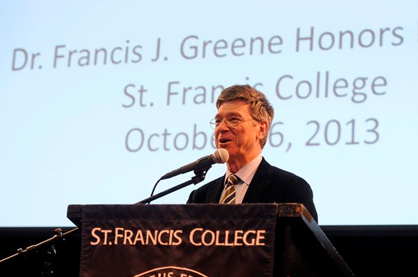 Jeffrey Sachs, Director of the Earth Institute and a leading advocate for ending global poverty, was the guest speaker for the second Dr. Francis J. Greene Honors Lecture on October 16 at St. Francis College.