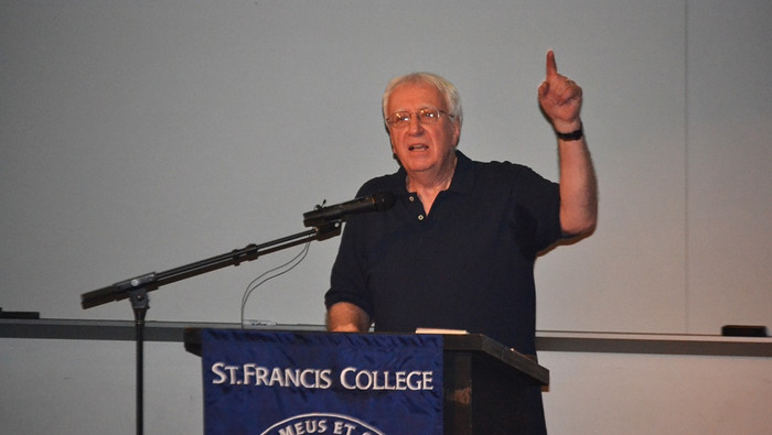 Father André Cirino, OFM, Franciscan author and pilgrimage guide, spoke about the seldom discussed heroics of three men from the city of Assisi – one who helped save the city from destruction and the other two saving the lives of between 250 and 300 Jews from the Holocaust - for the 15th Annual Yom Hashoah Holocaust Remembrance Day event on April 28 at St. Francis College.