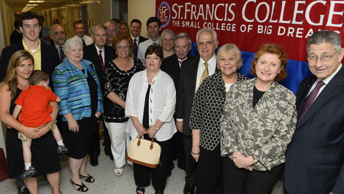 State Assembly Speaker Sheldon Silver headed a contingent of local politicians who came to St. Francis College on June 25 for the formal unveiling of the Eileen C. Dugan Life Sciences Center.