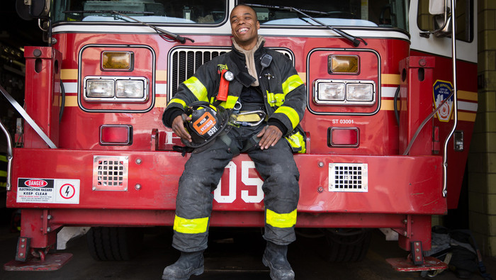 The story recounts his first fire as a probationary fire fighter.