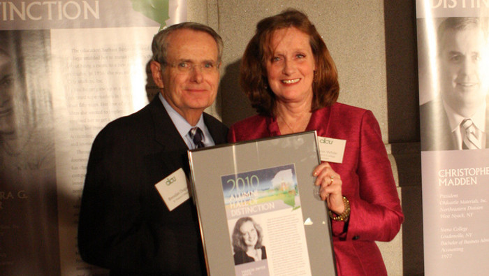 St. Francis College alumnae and Executive Director of the Child Abuse Prevention Program (CAPP) Marion D. White '78 was honored with the Alumni Hall of Distinction Award for her contributions to New York State's economy by the Commission on Independent Colleges and Universities (CICU) on Monday, March 1 at the New York State Capital in Albany.