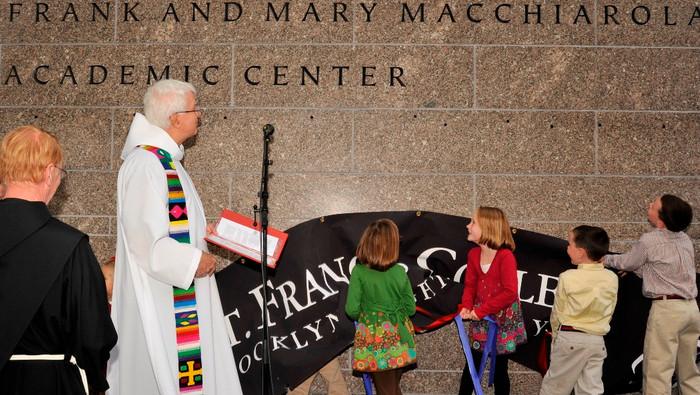 It was at last year's Spring Commencement when then St. Francis College Board of Trustees Chairman Brendan J. Dugan '68 surprised Frank J. '62 and Mary Macchiarola with the announcement that the College's new Academic Center would be adorned with their names in honor and appreciation of their commitment and contributions to the College. Now, as President of the College, Mr. Dugan formally dedicated the Frank and Mary Macchiarola Academic Center with a special celebration on Friday, September 25.
