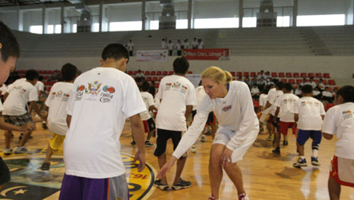 St. Francis Women's Basketball Assistant Coach Sue Wicks spent her summer vacation on an amazing experience as an International Envoy for the NBA helping to conduct basketball clinics for hundreds of youths across the Philippines. Wicks was part of SportsUnited, a program run by the U.S. Department of State's Bureau of Educational and Cultural Affairs with the National Basketball Association (NBA) and the Women's National Basketball Association (WNBA).