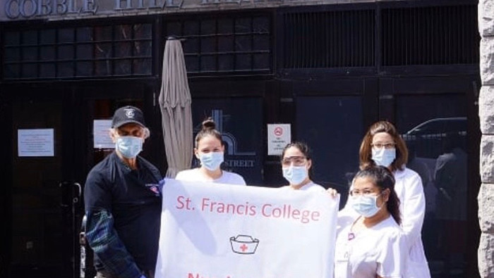 Students who lead the St. Francis College Nursing Club recently arranged a donation of 500 surgical masks to the Cobble Hill Health Center, a not-for-profit long and short term care facility in Brooklyn providing services to the disabled and elderly, and to the NYPD 76th Precinct.