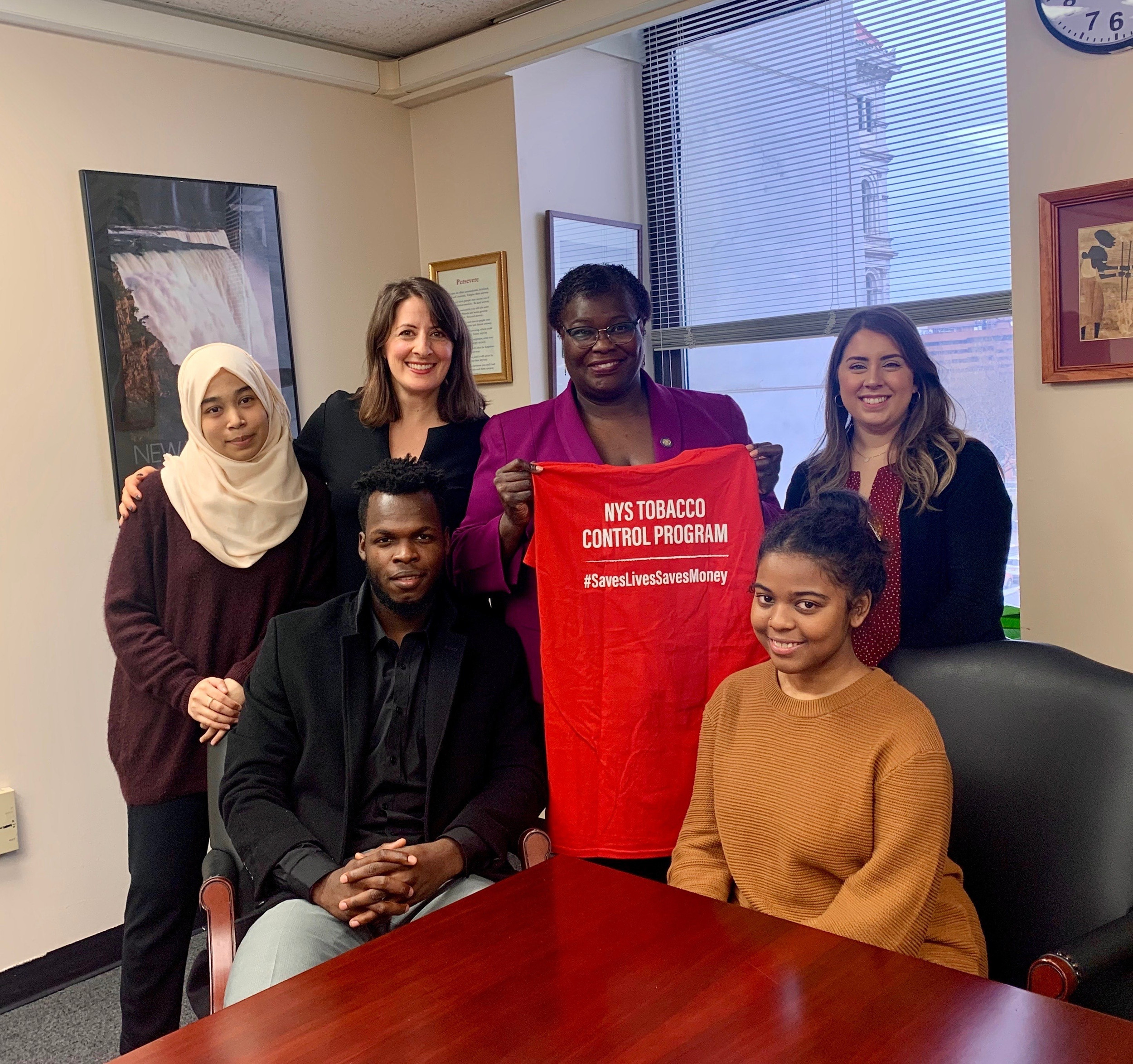 Six St. Francis College students helped educate New York State lawmakers – including State Senator Roxanne Persaud (19th District) and Assemblywoman Latrice Walker (55th District) -- about the detrimental impact of tobacco usage in students' lives and communities, in a day-long visit to the State capital on February 4, 2020.