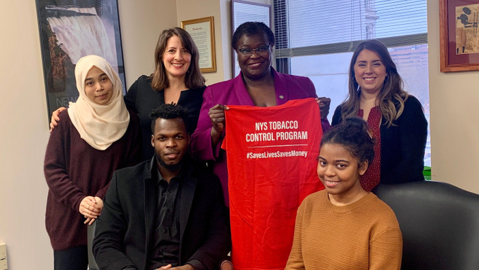 Six St. Francis College students helped educate New York State lawmakers – including State Senator Roxanne Persaud (19th District) and Assemblywoman Latrice Walker (55th District) -- about the detrimental impact of tobacco usage in students' lives and communities, in a day-long visit to the State capital on February 4, 2020.