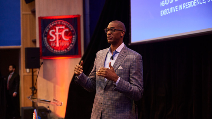 Encouraging the audience to not merely tolerate but accommodate people from cultures other than their own, Charles D. Smith, who retired from a 10-year professional basketball career in 1997, delivered a Volpe Lecture on November 20th that extolled the life-changing effects of global travel and meaningful cross-cultural relationships.
