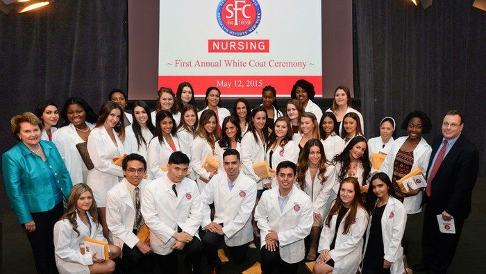 More than 40 undergraduate Nursing students received a medical White Coat emblazoned with the St. Francis College logo to show their dedication to the health and well-being of their future patients at St. Francis College's first White Coat Ceremony on Tuesday, May 12, 2015.